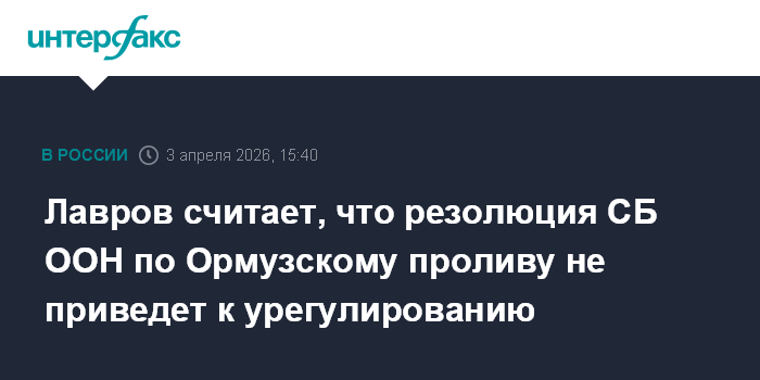 Лавров считает, что резолюция СБ ООН по Ормузскому проливу не приведет к урегулированию