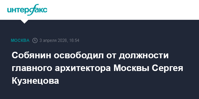 Москва. 3 апреля. INTERFAX.RU - Мэр Москвы Сергей Собянин освободил от занимаемой должности главного архитектора столицы Сергея Кузнецова.
