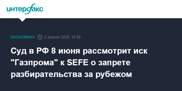 Суд в РФ 8 июня рассмотрит иск "Газпрома" к SEFE о запрете разбирательства за рубежом