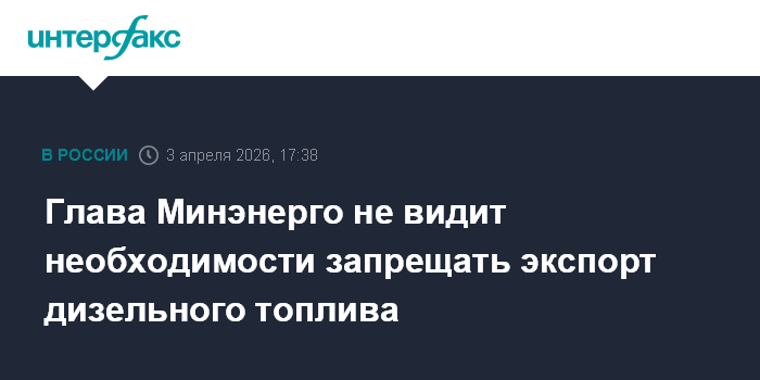 Глава Минэнерго не видит необходимости запрещать экспорт дизельного топлива