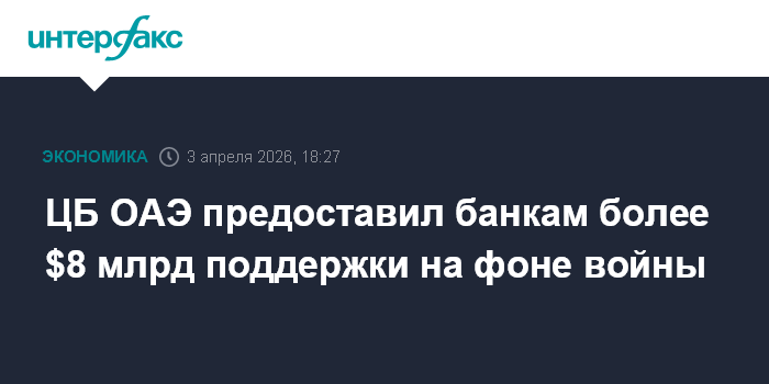 ЦБ ОАЭ предоставил банкам более $8 млрд поддержки на фоне войны