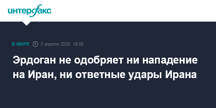 Москва. 3 апреля. INTERFAX.RU - Президент Турции Реджеп Тайип Эрдоган в телефонном разговоре с президентом России Владимиром Путиным заявил, что не одобряет ни ударов по Ирану, ни ответных действий Тегерана, сообщили в в канцелярии турецкого лидера.