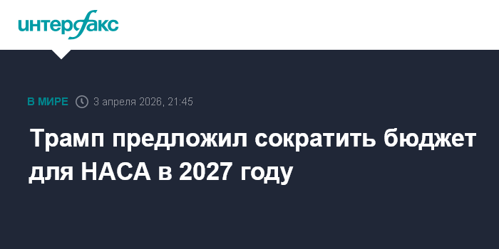 Москва. 3 апреля. INTERFAX.RU - Президент США Дональд Трамп в запросе бюджета на 2027 финансовый год предлагает на $6 млрд сократить расходы на космическое агентство НАСА, сообщают американские СМИ со ссылкой на документ Белого дома.
