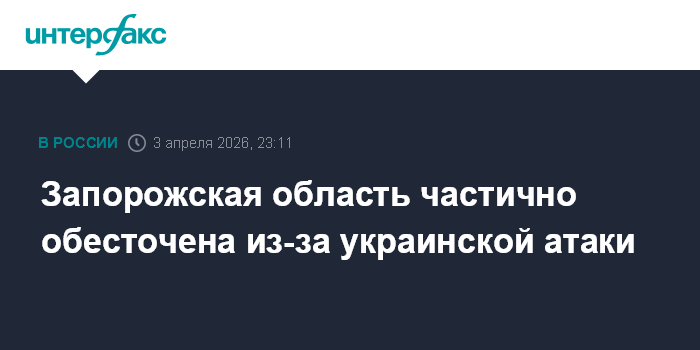 Запорожская область частично обесточена из-за украинской атаки