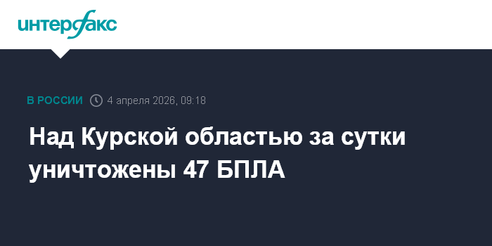 Москва. 4 апреля. INTERFAX.RU - Губернатор Курской области Александр Хинштейн сообщил об уничтожении 47 украинских беспилотников за минувшие сутки над регионом.