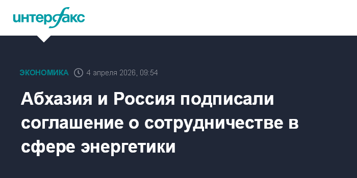 Москва. 4 апреля. INTERFAX.RU - Правительство Абхазии и правительство Российской Федерации подписали соглашение о мерах по обеспечению совместной работы Единой энергетической системы России и энергетической системы Абхазии.