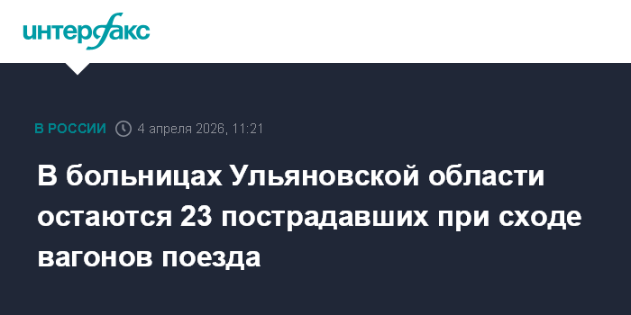 Москва. 4 апреля. INTERFAX.RU - На лечении остаются более двадцати пострадавших в результате схода нескольких вагонов пассажирского поезда в Ульяновской области, сообщил помощник министра здравоохранения РФ Алексей Кузнецов.