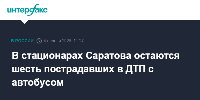 Москва. 4 апреля. INTERFAX.RU - На лечении в больницах Саратова остаются шесть пострадавших в ДТП с автобусом, сообщил помощник министра здравоохранения России Алексей Кузнецов.