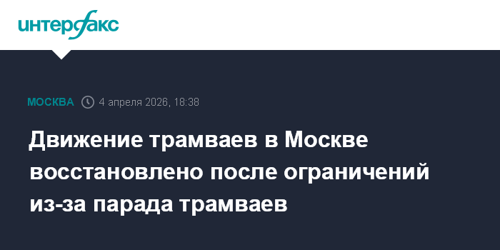 Москва. 4 апреля. INTERFAX.RU - Ограничения в движении трамваев, вводившиеся в связи с проведением Весеннего парада трамваев, сняты, сообщается в столичном департаменте транспорта в субботу.