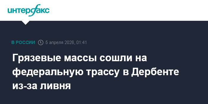 Москва. 5 апреля. INTERFAX.RU - Сход селевых потоков на федеральную трассу произошел в Дербенте (Дагестан) из-за обильного дождя, грязевые массы движутся в сторону города, сообщает пресс-служба городской администрации в воскресенье.