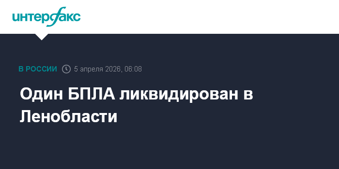 Москва. 5 апреля. INTERFAX.RU - Один украинский беспилотник уничтожен в небе над Ленинградской областью, сообщил губернатор Александр Дрозденко.