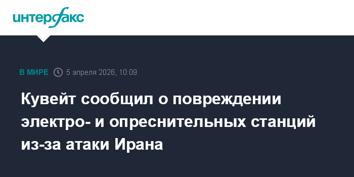 Москва. 5 апреля. INTERFAX.RU - Кувейтская электростанция и опреснительный завод были повреждены в результате атаки беспилотников, запущенных накануне Ираном, сообщило в воскресенье утром министерство электроэнергии и водоснабжения Кувейта.