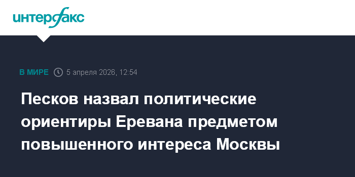 Песков назвал политические ориентиры Еревана предметом повышенного интереса Москвы