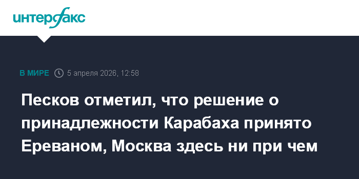 Песков отметил, что решение о принадлежности Карабаха принято Ереваном, Москва здесь ни при чем