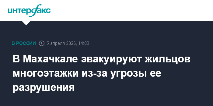 Москва. 5 апреля. INTERFAX.RU - Власти Махачкалы совместно со службой ГО и ЧС проводят срочную эвакуацию жителей многоквартирного дома из-за вопросов безопасности, сообщает пресс-служба администрации Махачкалы в воскресенье.