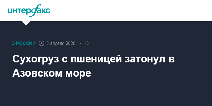 Москва. 5 апреля. INTERFAX.RU - Судно с грузом пшеницы затонуло в Азовском море у берегов Херсонской области, один человек погиб, двое пропали без вести, сообщил губернатор региона Владимир Сальдо в воскресенье.