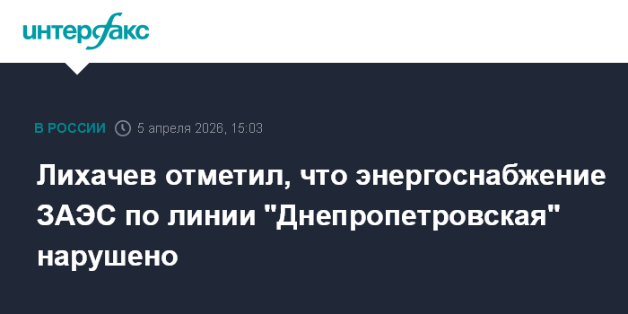 Москва. 5 апреля. INTERFAX.RU - "Днепропетровская" линия Запорожской АЭС повреждена, снабжение идет по "Ферросплавной" линии, сообщил глава "Росатома" Алексей Лихачев журналистам в воскресенье во время чемпионата AtomSkills в Екатеринбурге.