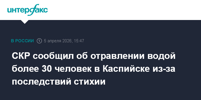 СКР сообщил об отравлении водой более 30 человек в Каспийске из-за последствий стихии