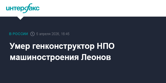 Москва. 5 апреля. INTERFAX.RU - Скончался генеральный директор, генеральный конструктор НПО машиностроения Александр Леонов, сообщили "Интерфаксу" в воскресенье в пресс-службе предприятия.