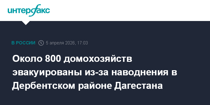 Около 800 домохозяйств эвакуированы из-за наводнения в Дербентском районе Дагестана