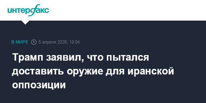 Москва. 5 апреля. INTERFAX.RU - США пытались доставить оппозиционерам в Иране грузы с оружием, заявил в воскресенье американский президент Дональд Трамп.