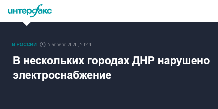 Москва. 5 апреля. INTERFAX.RU - Как минимум один город Донецкой Народной Республики полностью обесточен, следует из сообщения администрации Докучаевского городского округа.