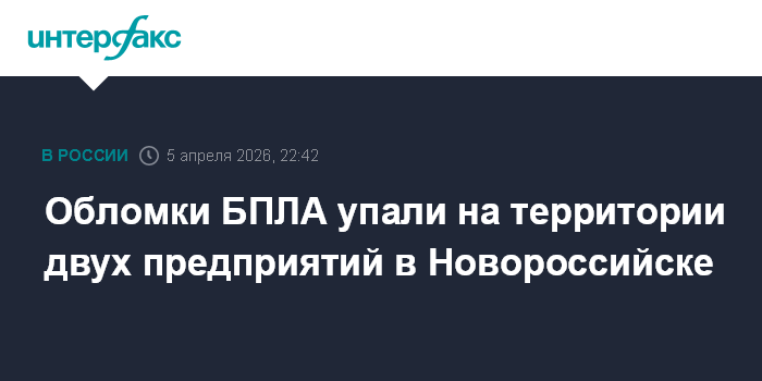 Москва. 5 апреля. INTERFAX.RU - Фрагменты БПЛА обнаружены на территории двух предприятий в Новороссийске, в одном из случаев произошло возгорание, его потушили, сообщает оперативный штаб Краснодарского края.