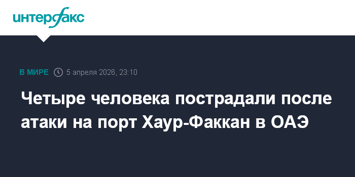 Москва. 5 апреля. INTERFAX.RU - По меньшей мере четыре человека получили травмы после удара по порту Хаур-Факкан в ОАЭ, сообщают в воскресенье арабские СМИ.