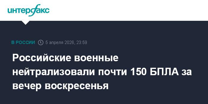 Российские военные нейтрализовали почти 150 БПЛА за вечер воскресенья