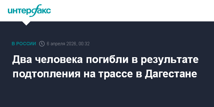 Москва. 6 апреля. INTERFAX.RU - Поднятие уровня воды привело к подтоплению участка федеральной трассы в Дербентском районе Дагестана, погибли два человека, которых унесло течением, сообщил в воскресенье "Интерфаксу" руководитель Центра управления регионом (ЦУР) республики Исрафил Исрафилов.