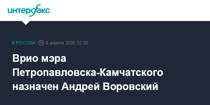 Москва. 6 апреля. INTERFAX.RU - Временно исполняющим обязанности главы Петропавловска-Камчатского назначен Андрей Воровский, сообщает пресс-служба правительства Камчатского края в понедельник.