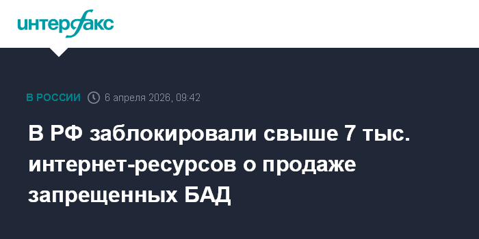 Москва. 6 апреля. INTERFAX.RU - Более 7 тыс. интернет-ресурсов, распространяющих информацию о розничной продаже запрещенных БАД, заблокировано в РФ, сообщили в Роспотребнадзоре.