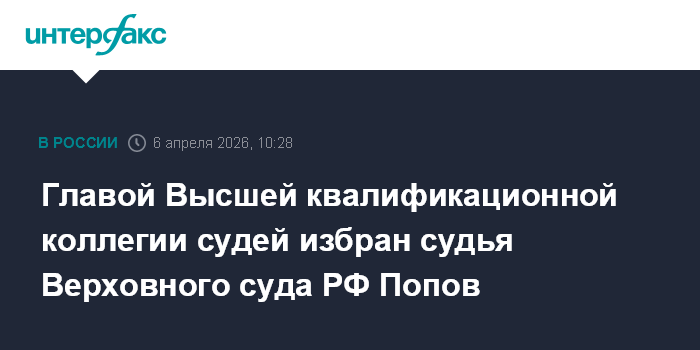 Главой Высшей квалификационной коллегии судей избран судья Верховного суда РФ Попов