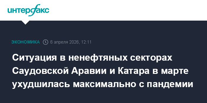 Ситуация в ненефтяных секторах Саудовской Аравии и Катара в марте ухудшилась максимально с пандемии