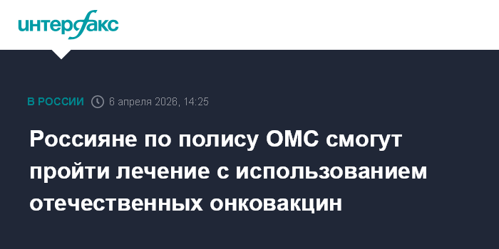 Россияне по полису ОМС смогут пройти лечение с использованием отечественных онковакцин