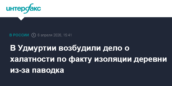 Москва. 6 апреля. INTERFAX.RU - В Удмуртии возбудили уголовное дело о халатности по следам публикаций о нарушении прав жителей деревни в Вавожском районе на фоне паводка, сообщило управление СКР по региону.
