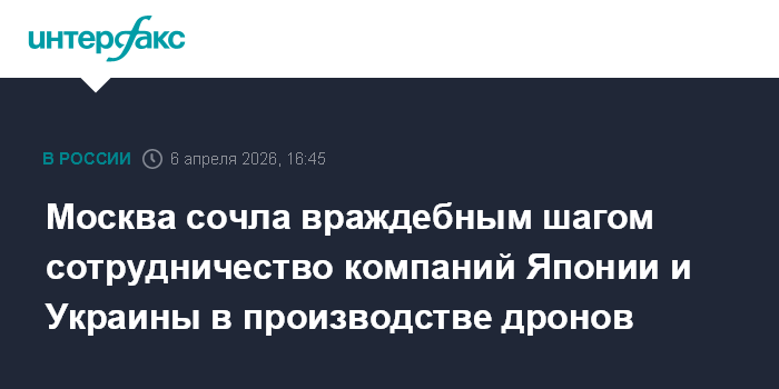 Москва сочла враждебным шагом сотрудничество компаний Японии и Украины в производстве дронов