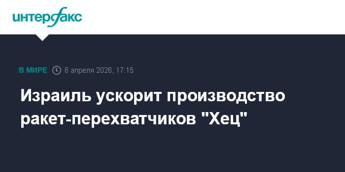 Москва. 6 апреля. INTERFAX.RU - Израиль намерен ускорить производство противоракет большой дальности "Хец" ("Стрела"), сообщило Минобороны страны.