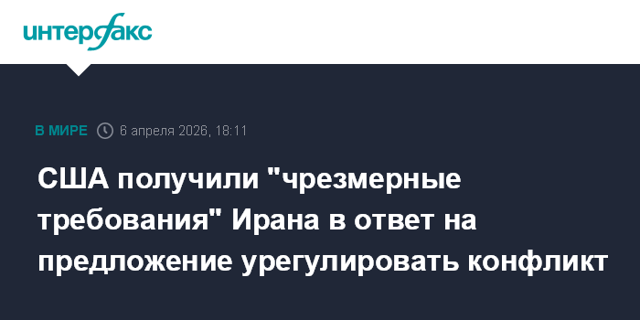 Москва. 6 апреля. INTERFAX.RU - Администрация США получила ответ Ирана на американские предложения по прекращению огня, но в Вашингтоне сочли контрпредложения Тегерана неконструктивными, сообщает Axios со ссылкой на источник.