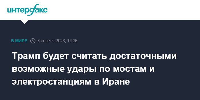 Трамп будет считать достаточными возможные удары по мостам и электростанциям в Иране
