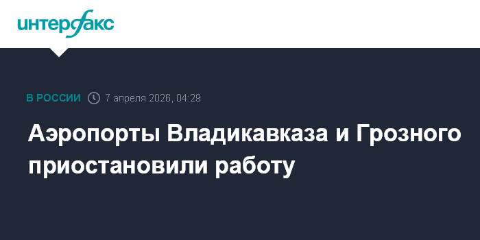 Москва. 7 апреля. INTERFAX.RU - Введены ограничения на прием и выпуск воздушных судов в аэропортах Владикавказа и Грозного, сообщает Росавиация.