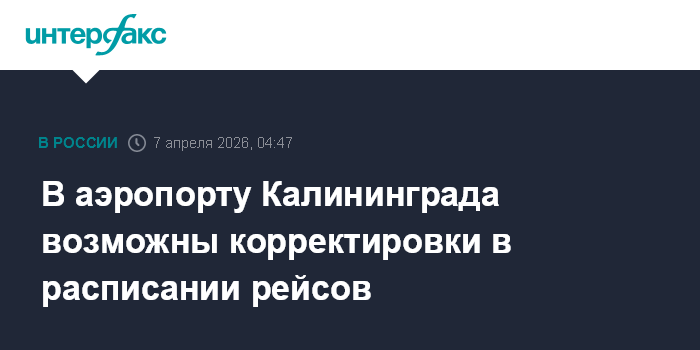 Москва. 7 апреля. INTERFAX.RU - В аэропорту Калининграда (Храброво) возможны корректировки в расписании рейсов, сообщила Росавиация в своем канале в Max.
