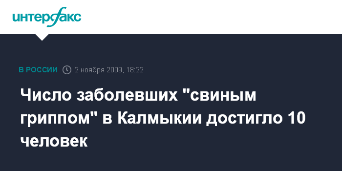 Таким образом, в Калмыкии по состоянию на 2 ноября зарегистрировано 10 случаев гриппа А/Н1N1, отметила собеседница агентства.