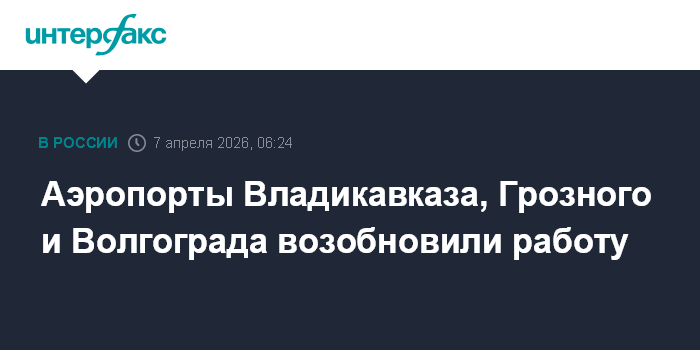 Москва. 7 апреля. INTERFAX.RU - Сняты ограничения на прием и выпуск воздушных судов в аэропортах Владикавказа и Грозного, сообщает Росавиация в своем канале в Max.
