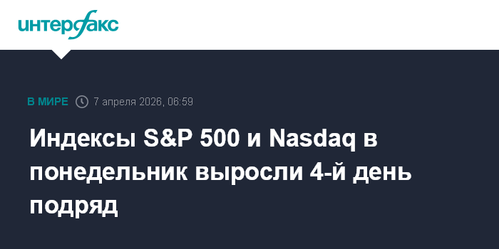 Индексы S&P 500 и Nasdaq в понедельник выросли 4-й день подряд