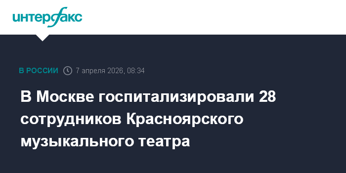 "28 сотрудников Красноярского музыкального театра были госпитализированы в Москве. К моменту появления первых сообщений в СМИ число участников коллектива с симптомами отравления не соответствовало действительности, но к полуночи их количество увеличилось. Все они под присмотром врачей. На данный момент точная причина не установлена, специалисты выясняют", - сказал собеседник "Интерфакса".