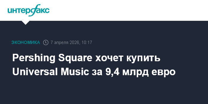 Москва. 7 апреля. INTERFAX.RU - Инвестиционная компания Билла Акмана Pershing Square Capital Management направила предложение о покупке звукозаписывающей студии Universal Music Group (UMG).