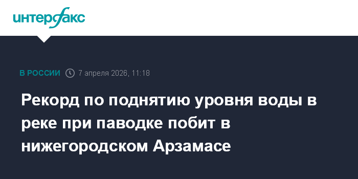 Москва. 7 апреля. INTERFAX.RU - Подъем уровня воды в реке Теша в городе Арзамасе Нижегородской области в ходе весеннего половодья этого года достиг рекордных значений, сообщил мэр города Александр Щелоков.