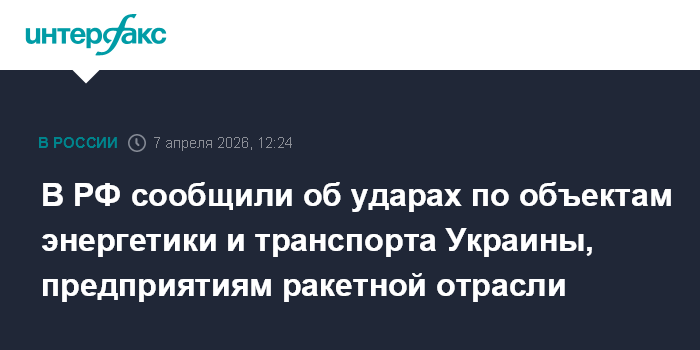 В РФ сообщили об ударах по объектам энергетики и транспорта Украины, предприятиям ракетной отрасли