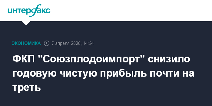 ФКП "Союзплодоимпорт" снизило годовую чистую прибыль почти на треть